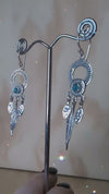 A timeless feather earring design for those that love a statement dangle! This genuine turquoise design has intricate silver patterning and textured charms that add movement and shimmer.