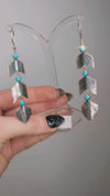 Embrace the spiritual symbolism of 3 with this striking three-tier feather earring design, meticulously hand-crafted in sterling silver. The layered design captures movement and depth, whilst turquoise gemstone accents infuse the piece with natural beauty and calming energy. A meaningful accessory that honours the transformative power of three.