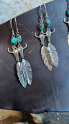 Celebrate your love for the Wild West with our Turquoise Buffalo earrings. Hand-crafted with genuine turquoise and sterling silver, this bold earring design features a solid silver moulded bull head charm and textured feather. Show off your unique cowgirl style and enjoy the longevity of this stunning piece.