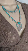 Turn heads with the Turquoise Statement Collar Necklace! This bold, boho beauty jazzes up any outfit—dresses, jumpers, or even that old tee you swear you’ll ditch (but won't). Crafted from shiny silver-plated brass, it’s an adjustable gem that delivers big style without emptying your wallet. Shine on, you crazy diamond!